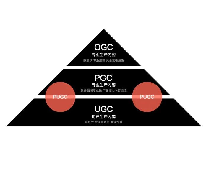 **生产方式:**常见的内容生产方式有 PGC、UCG、OGC等不同分类。PCG是专业生产内容,由专业团队负责生产高品质内容,并将内容发布到内容平台,以获取利益;UGC是平台用户所产生的内容,以用户自发生产为主,内容生产门槛低,但质量参差不齐,内容数量多且多元化,具有交强互动性,有助于提升产品社区属性;OGC是生产品牌向内容,内容也是由专业团队生产,更侧重营销、推广和市场传播为主,有一定官方属性。目前还出现一类内容生产形式-PUGC,是现在很多内容型产品的主流内容生产方式,由专业用户所生产内容,具备UGC的内容多样性同时又有PGC的专业度。这几种内容生产模式并不互斥,而且可以相互转化,随着产品的发展,内容生产形式占比也会发生一定的变化,B站就是很典型的UGC转PUCG,并且内容品类也在开始朝着小众专业类(比如:法律、历史、政治、经济等)进行尝试。