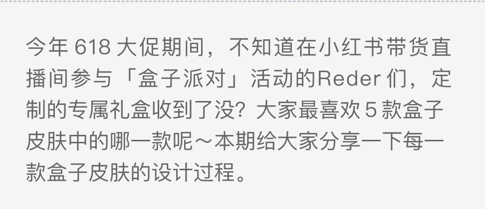 **创意策划:**小红书用户通过平时的社区互动行为,会随机触发惊喜盒子,获得购物券或者红包等奖励。而本次玩法是在618大促期间结合这个心智,线下线上联动,用户通过线上活动兑换礼品与盒子,最终收到一份线下专属定制礼盒,获得实物反馈。