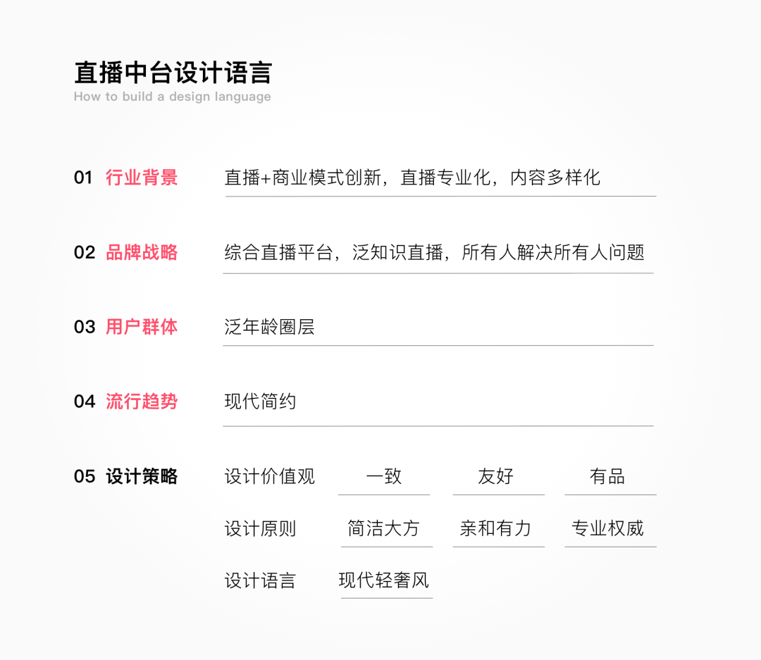 所有的设计语言,都是服务于业务顶层战略发展。制定设计策略前,需对业务所在的行业背景、品牌战略、用户群体、流行趋势有充足的认知。当返工无数次还是没方向时,说明以下前四点需要再深入明确。