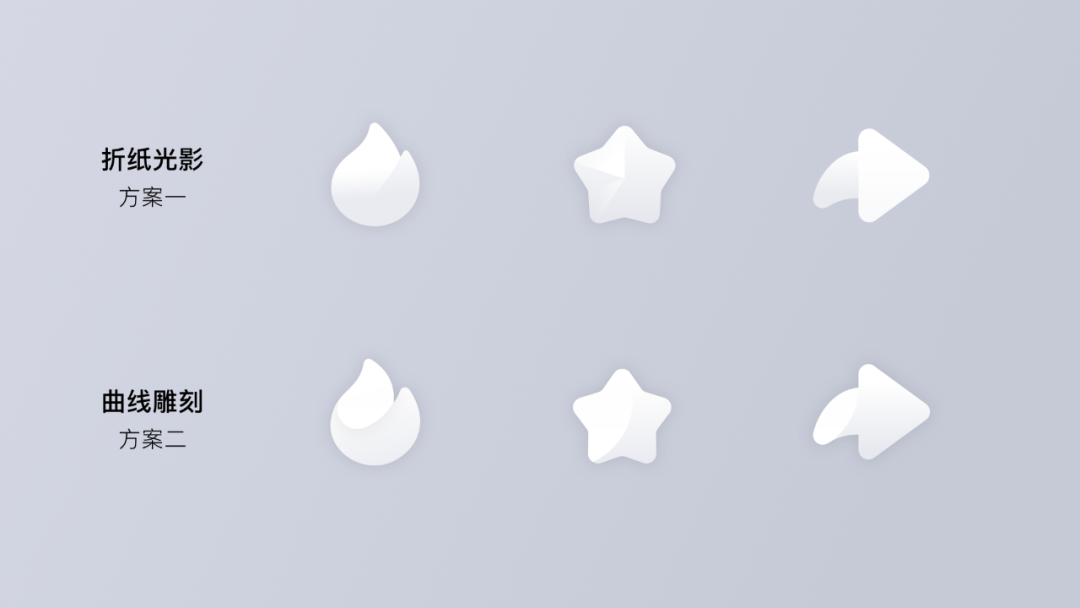 在图标的设计中,我们基于专业亲和的品牌理念延展出2个不同的方向。方案一以直线折纸与光影为视觉元素,呈现一个用心专业的态度。方案二以曲线雕刻艺术展现专业亲和的魅力。
