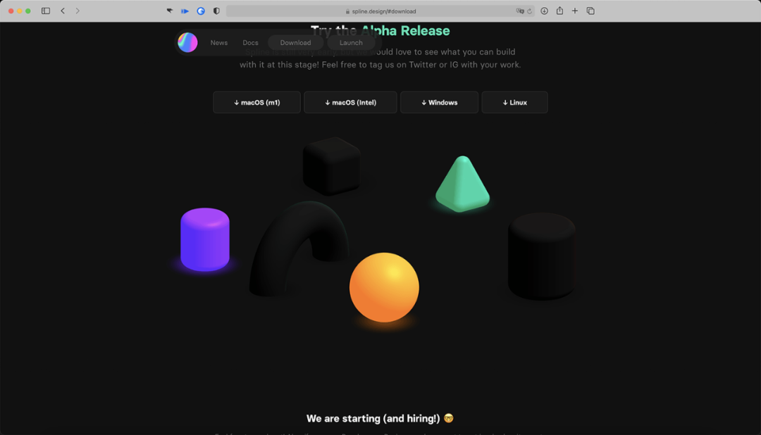 在网络上可以查找到Spline的教学视频,这里就不赘述了,感兴趣的同学可以自行搜索。Spline目前已提供MacOS、Win以及Linux版本,可在官网下载。