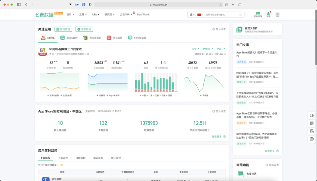 用户研究在设计当中是极为重要的一部分,很多设计师在做市场调研或竞品分析时都会为没有调研数据而苦恼,在这里为大家推荐一款数据利器--七麦数据。七麦数据是国内专业的移动应用数据分析平台,覆盖AppStore&GooglePlay双平台,我们可以在这里了解自家产品以及相关竞品的相关信息。