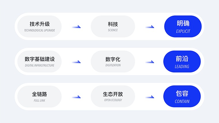 明确,是一目了然的科技感。前沿,是锐不可挡的数字化。包容,是包罗万象的全链路。