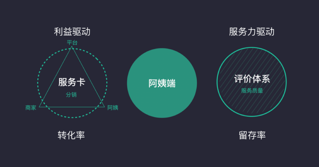 平台打造58阿姨最终的目的是通过对阿姨的把控从而提升服务质量。那么58阿姨端作为到家精选重要的服务载体,在到家服务产业环节中起着举足轻重的作用。其内容不仅仅包含了阿姨的体验,还包含了分销+评价体系。所以设计不仅要持续完善58阿姨的体验,更要通过全链路的思维来发现与解决链路中的问题。