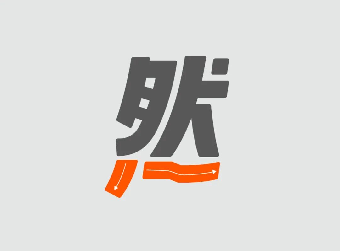 为了追求字体简洁流畅,微笑体在一些特殊的字型中做出了简化,遵照手写习惯设计了连笔。例如“然”字四点水设计成连笔的样子,突出了字的特性同时很好的展示了微笑体的特性。