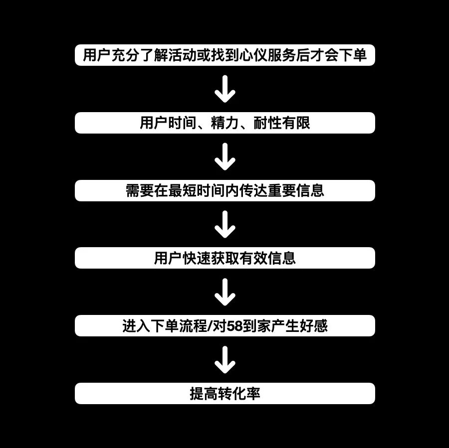 当用户使用服务类APP的时间超过这个阈值后,就会因为迟迟没有达到目的而产生焦躁情绪,随之而来的负面影响要么是跳出到其他APP,亦或者对软件产生厌烦感,而无论哪一种都不是我们想要看到的结果。这也就意味着,我们每次只有20分钟的时间让用户完成从筛选到下单的时间。