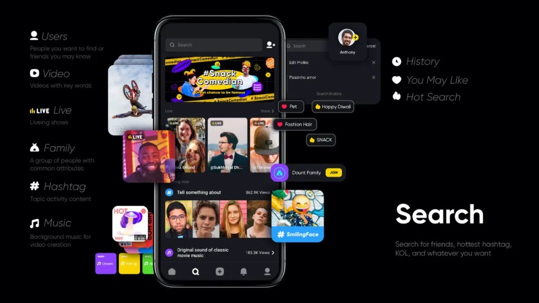 SnackVideo App鼓励每个用户记录周围的有趣事物并发布它们。我们会根据用户习惯智能分析用户喜欢的内容,并推荐更多类似的视频。北极冰川融化,非洲牛羚迁徙,印度板球比赛等……在SnackVideo中,用户可以记录并看到这个世界上正在发生的所有事情。