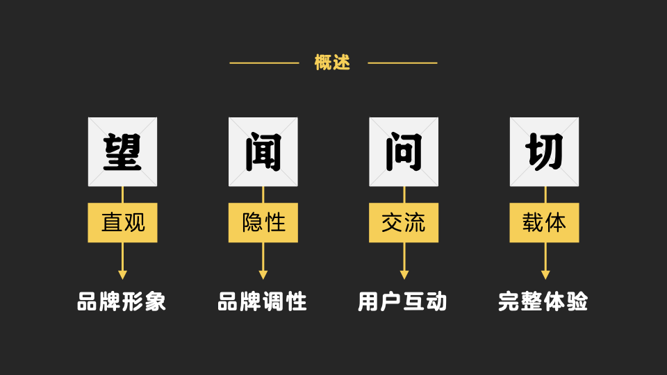 “四诊法” 即“望”“闻”“问”“切”,讲的是中医四个步骤来为患者诊断病情的过程,对应IP建设的维度来说,可以概括为品牌形象、品牌调性、用户互动、完整体验这四个比较直接作用于品牌与用户的关注方向,这里结合项目经验浅聊一些心得。