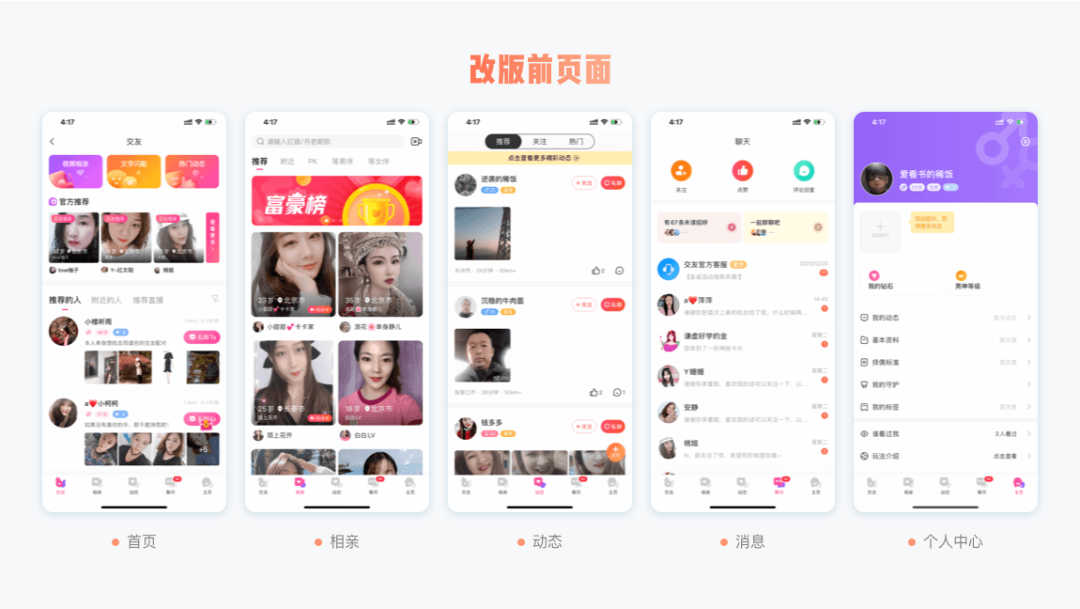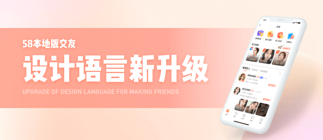 从探探、陌陌到风头正盛的soul,社交产品赛道的竞争早已进入白热化阶段。58本地版交友在寻找差异化路径提升用户粘性的同时,也期望借助58app的流量吸引更多年轻的用户群体。基于这一诉求,我们对交友设计语言进行了焕新升级,致力为用户创造更好的体验。