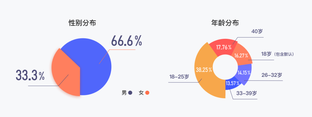 根据调研数据来看,我们的用户群体男女比例为2:1,以男性受众为主。其中18-25岁的用户是我们主要目标群体,其他年龄段分布较为均匀。