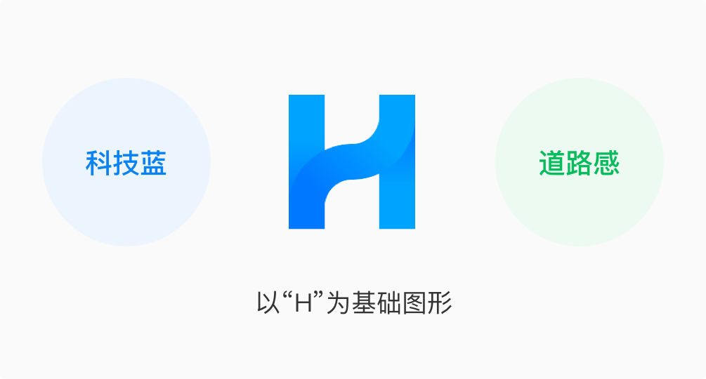 “H”字母样式结合道路感和科技蓝,我们设计出了第一版基础图形。