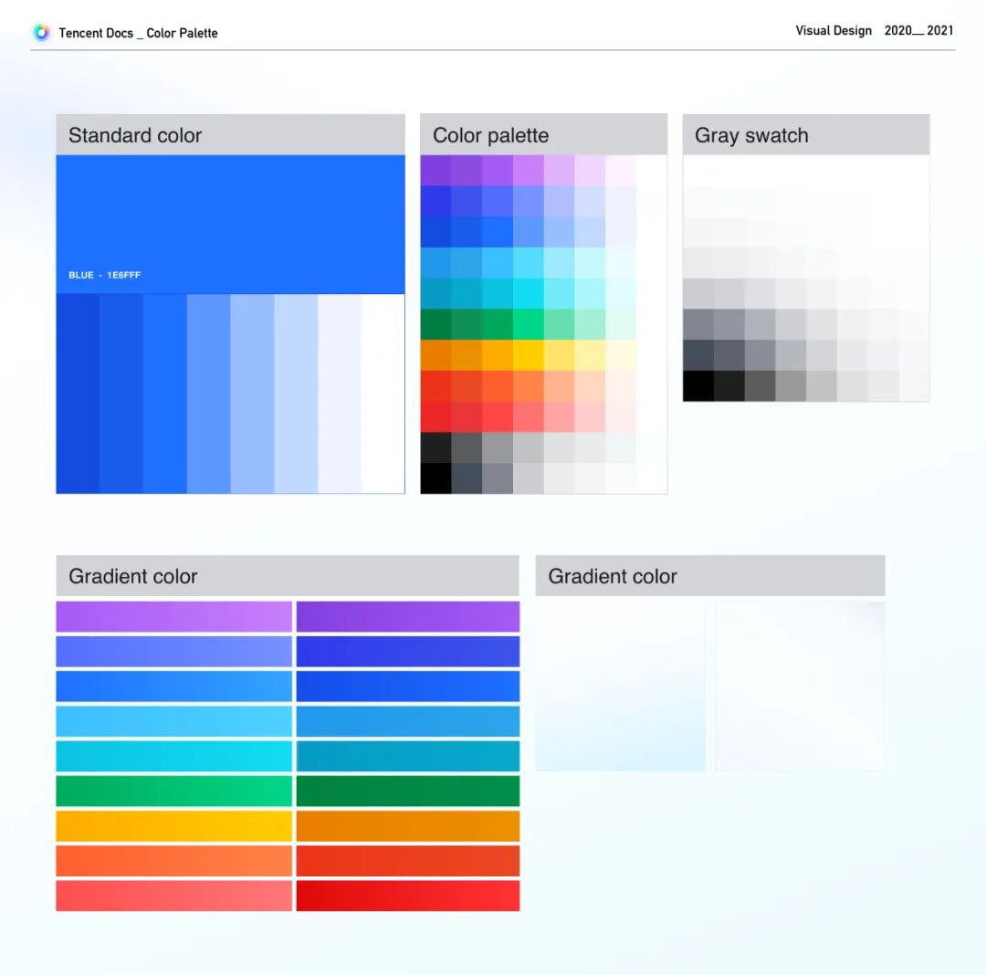 在《腾讯文档-构建科学有效的色彩系统》这篇文章中,我们阐述了腾讯文档如何升级了新的品牌色,为腾讯文档塑造更加有未来科技感及智慧感的视觉感受和品牌认知,以及如何构建一个科学有效的调色板。