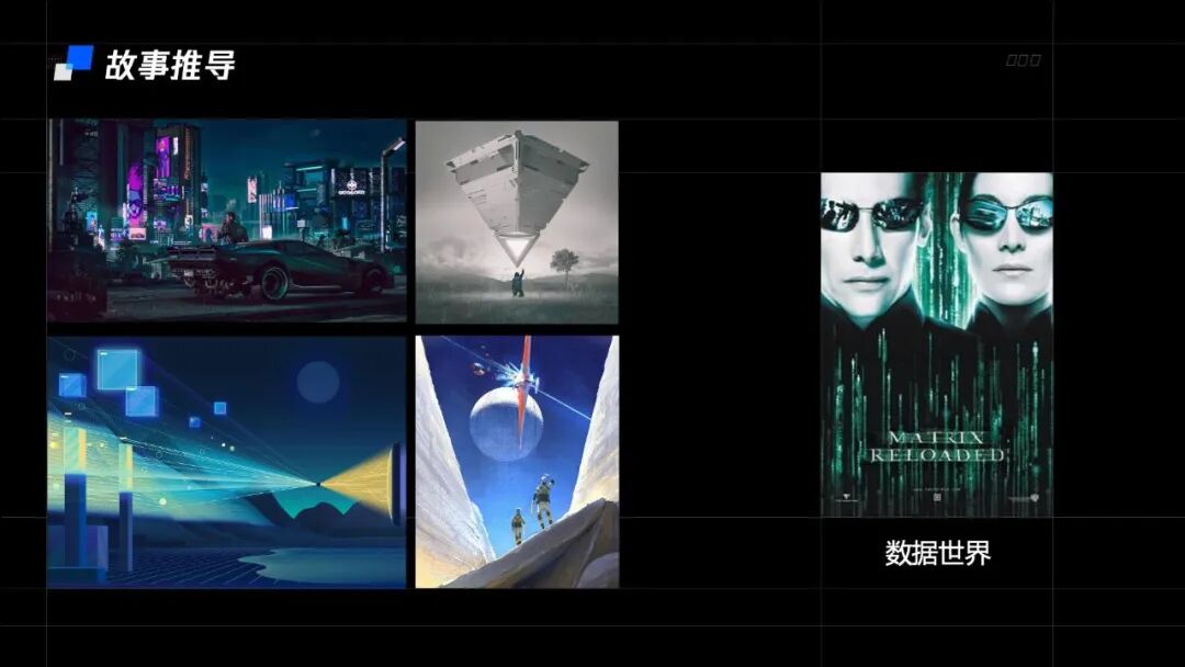 因此,我们为此尝试设计了许多不同的概念,从科技城市中的自然景观,到守护世界的科技神兽。这些概念虽然在视觉效果上可以做到科技感十足,但与自然场景的结合都显得较为生硬,或者过于复杂与就在我们感到灵感枯竭之时,突然想到小时候看过的电影黑客帝国,黑客帝国描写下的世界是一个由虚拟数据构成的世界,那里一切现实场景都是数据构成的,就像我们现在丰富多彩的网络世界,具象的机械科技元素和丰富的由数据构成的自然元素在这样的世界观下显得非常和谐。腾讯安全业务的主战场从C端转向B端也类似于数据世界开启了新的探索。
