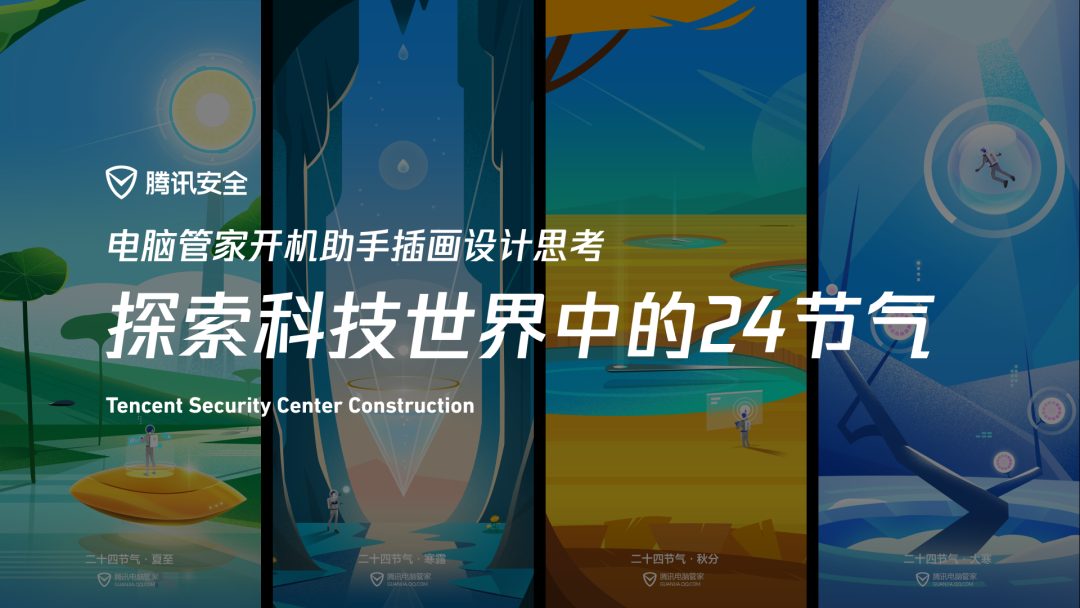 二十四节气系列插画是电脑管家的经典设计之一,而节气本身也是中国古人在农耕时期,通过观察天体运行从而总结出的自然界气候、生物的变化规律,是属于古人的科学理论。古人的科学和未来的科技结合,让人们在感受季节变化的同时,可以体会到新科技的理性,纯粹,也可以更好的传达出腾讯安全的使命和责任感。